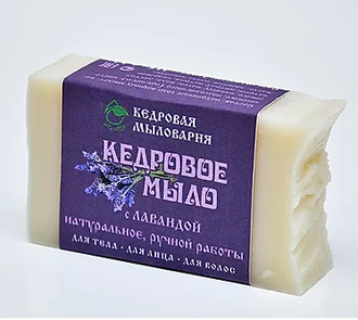 Мыло изготовлено вручную из природных ингредиентов. В его основе - кедровое масло с добавлением эфирного масла лаванды.