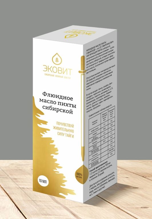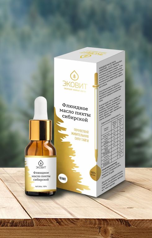 Продукт является мощным антисептиком, обладает выраженными противовоспалительными и болеутоляющими свойствами. Флюидное масло пихты более расширенным составом в отличии от традиционного эфирного пихтового масла. В его богатый состав входят терпеновые соединения, практически все жирорастворимые витамины (каротиноиды, токоферол, провитамины F, D, K), стерины (фитогормоны), фосфолипиды, комплекс природных органических кислот, макро- и микроэлементы. Такой богатый состав обеспечивает высокую эффективность комплекса.